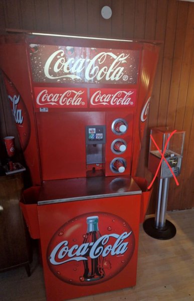 Säljer en fungerande cola-maskin. Man kan få upp till tre olika smaker i den. Lysande skylt. Kyler väldigt bra = iskall dricka! Muggdispenser sitter i för tre olika storlekar på muggarna. Kolsyretub ingår ej.