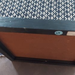 Brickan har repor på baksidan och en fläck och en liten repa på framsidan.