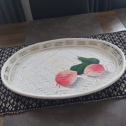 Serveringsbricka med Coca-Cola-motiv. Brickan är grön med en bild av en kvinna i hatt och texten "DRINK DELICIOUS Coca-Cola".