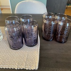 Fyra Coca-Cola glas. Glasen har texten "Enjoy Coca-Cola" tryckt på sig. Höjden på glasen är ca 13 cm.