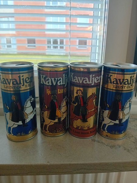 klassiska ölburkar av märket Kavaljer, ett öl som inte längre produceras. Varumärket ägdes av Spendrups Bryggeri, men tillverkades tidigare av Wårby Bryggerier AB.