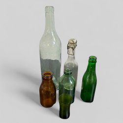 Etiketterna på två av flaskorna (de till vänster) bedöms vara ditklistrade i efterhand. Flasktyperna kan avvika från de som traditionellt använts för öl i Sverige. Köparen uppmanas att själv bedöma detta utifrån bilder.