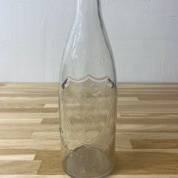 En glasflaska med en smal hals och en bredare kropp. Flaskan är genomskinlig och har en slät yta. Den har en enkel och tidlös design. Ca 30 cm hö, och 10 cm bred.