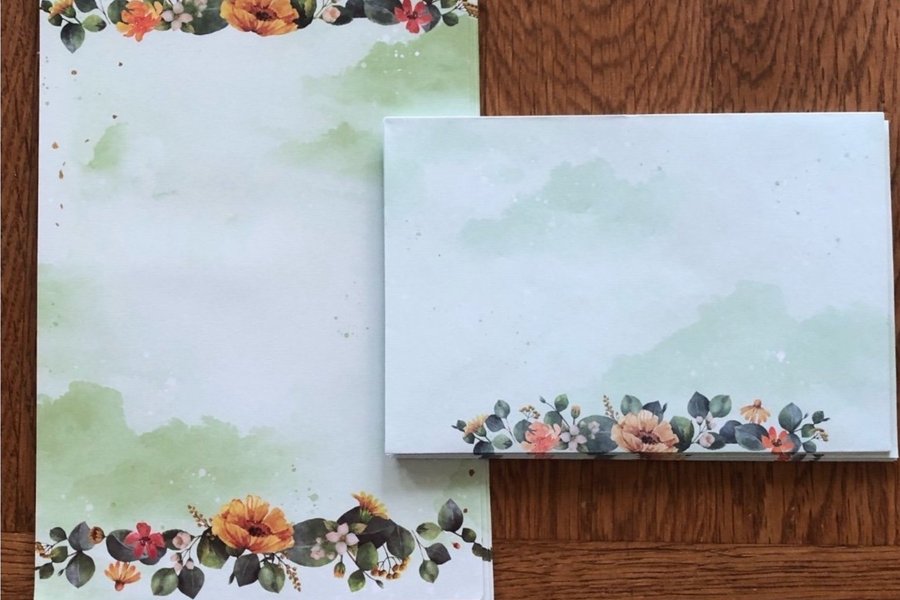 Säljer här ett fint set med 6 papper och 3 kuvert.