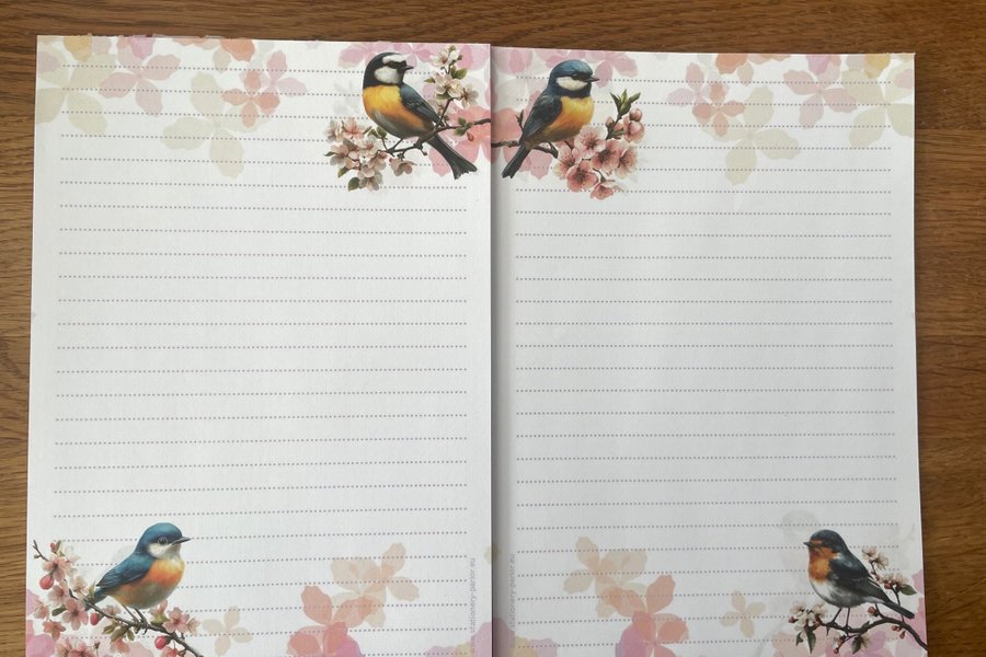 Säljer här 10 dubbelsidiga papper i A5,bilden visar fram och baksida.