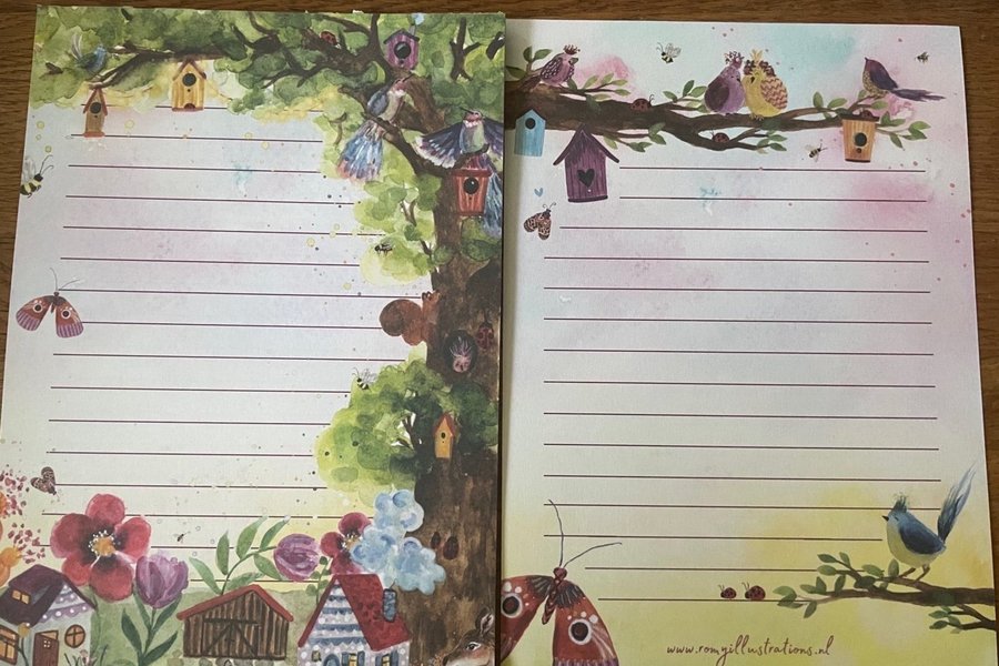 Säljer här 5 dubbelsidiga papper i A5,bilden visar fram och baksida.