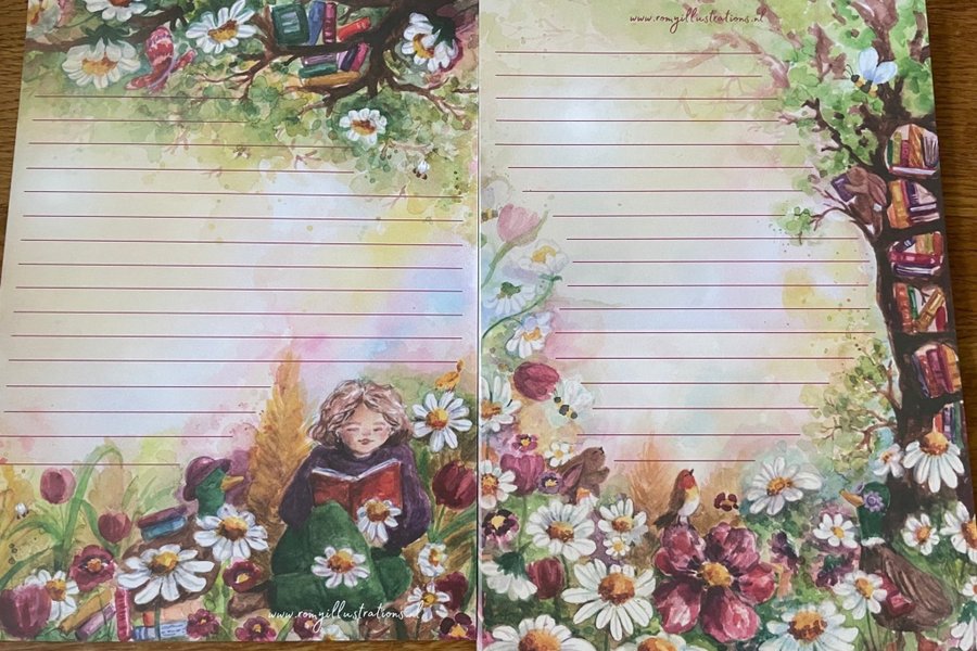 Säljer här 8 dubbelsidiga papper i A5,bilden visar fram och baksida.
