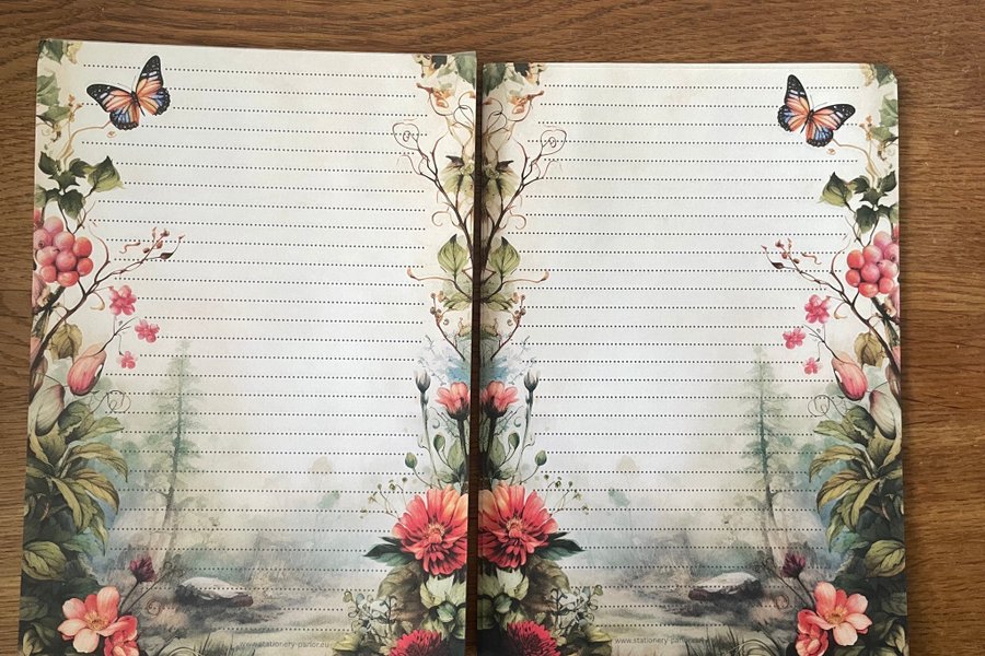 Säljer här 10 dubbelsidiga papper i A5,bilden visar fram och baksida.