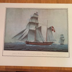 Ett tryck föreställande skeppet Jantine Fennegine. Konstnären är S.J.M.G.I. 41x 32 ca