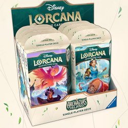 Keep decks organized and protected with deck boxes featuring case art from Disney Lorcana. Each deck case can hold up to 80 sleeved cards.