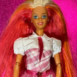 Söt Mermaid i jättefint skick! Osäker på hennes originallängd på håret. Stjärtfenan kan blinka om man trycker på sidan. Batteri sitter i, men jag kan inte garantera dess livslängd.