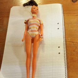 Barbie Chelsea doll. En söt docka med bruna ögon och hår. Hon har blå skor.
