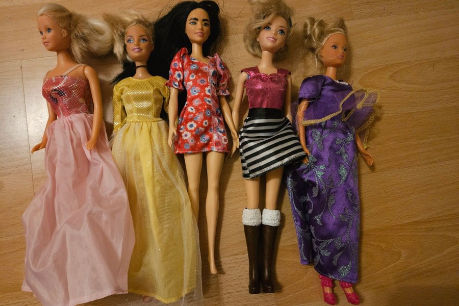 5 dockor med kläder