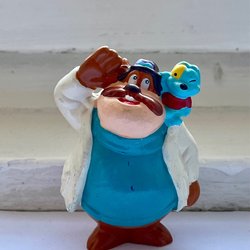 Sköldpaddsdocka, märkt med sköldpaddslogotyp och siffran 45 på nacken och ryggen. Dockan har rörliga armar och ben. Ögonen fattas, men annars är dockan i mycket fint skick. Inga håligheter i plasten. .Håret är format i plasten.