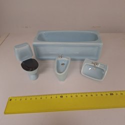 En liten porslinsdocka. Perfekt för samlare eller som en del av ett dockskåp. Se bilder för detaljer. Ena armen är lagad och en prick på ena benet som blivit vid tillverkningen