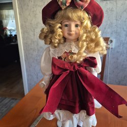 Porslinsdocka med hatt