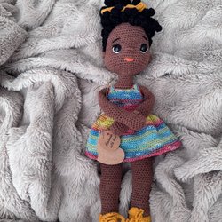 En unik, handgjord virkad docka med detaljerade kläder och skor. Perfekt som en present eller som en dekorativ detalj i barnrummet. Dockan gjort av 100% bommul garn och är 36 cm.