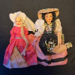 Två Vintage Dockor i Folkdräkt