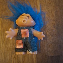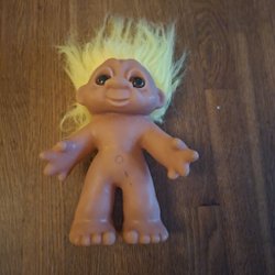 DAM troll 604. Höjd 22 cm. Trollet har en orange fläck på vänster hand och en liten skada på vänster lilltå.