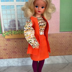 En helt underbar Sindy med ett fantastiskt fint originalhår som fått nya ögonfransar och ny makeup. Ett av benen böjer inte men det andra böjer som det ska.