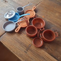 Detta parti innehåller 7 par dockskor i plast. Skorna är i olika färger: rosa, lila, blå, grön och svart. De har olika modeller, inklusive högklackade skor och sandaler.