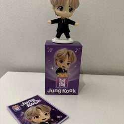 Säljer en Jin TinyTAN figur från McDonald's BTS samarbete, tillsammans med ett samlarkort.