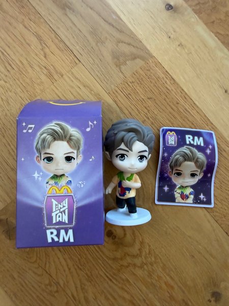 BTS Tiny Tan RM figur. Figuren kommer med ett tillhörande kort. Perfekt för samlare och fans av BTS.