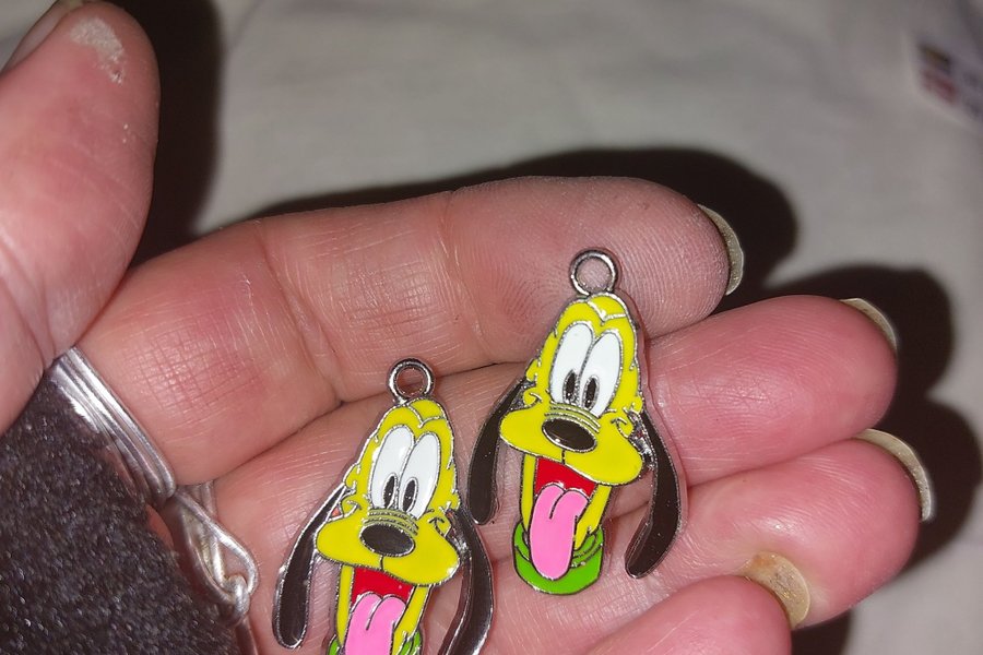 Två berlocker med Pluto motiv. Perfekt för smyckestillverkning eller annat pyssel.