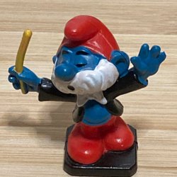 En smurf som står och dirigerar. Antagligen en dirigent.