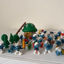 Samling av Smurffigurer. Perfekt för samlaren eller barnet som älskar Smurfarna.