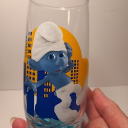 Glas med motiv från Smurfarna.
