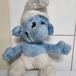 Gosedjur föreställande Glasögonsmurfen från Smurfarna. En liten etikett med texten "THE SMURFS" sitter fastsydd på sidan (se bild 1). Kan sitta själv (se bild 3). Den är cirka 22 cm lång.