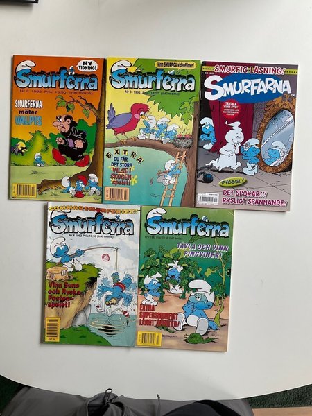 Samling av Smurferna serietidningar från 1992 och 2012.