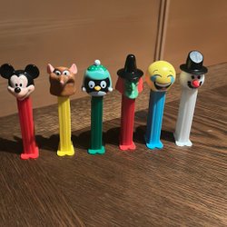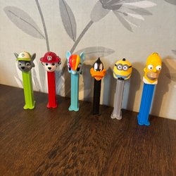 Samling av PEZ-dispensrar med olika karaktärer.
