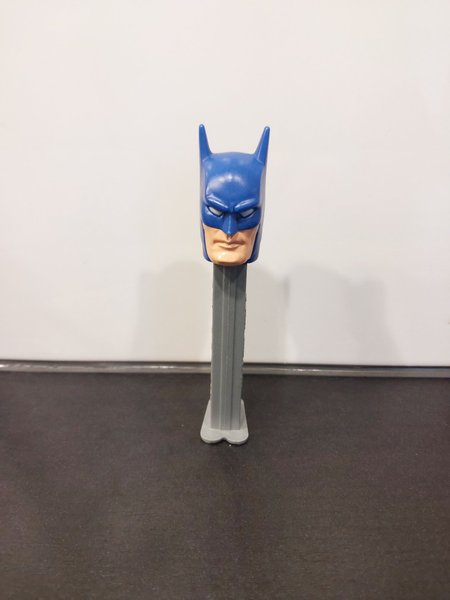 PEZ godisdispenser med Batman-motiv. Denna dispenser är en del av PEZ-samlingen och föreställer superhjälten Batman i sin klassiska blå mask. Perfekt för samlare eller som en rolig present.