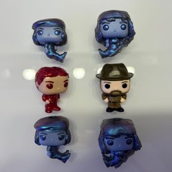 Ett set med Stranger Things Funko Pop kinder joy figurer, en William will Byers upside down ingår