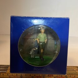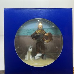 Figurinen föreställer Kapten Haddock från albumet ”Krabban med de gyllene klorna”. Sidan 27. Figurinen kommer i originalförpackning och medföljande bok + ett pass ( nr.167319) som även är ett äkthetsintyg, fransk text. Måtten är 7cm diameter fot/ 14cm hög.