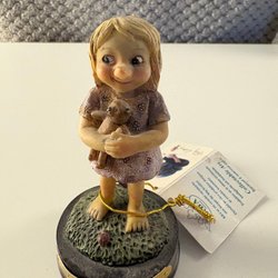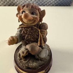 En charmig RBA rolf Lidberg figur föreställande en trollmor. Figuren är detaljrikt utformad med en korg fylld med godsaker och ett hängande kort. Perfekt för samlare av trollfigurer eller som en dekorativ detalj i hemmet.