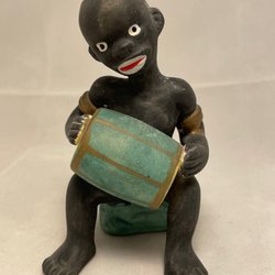 Dekorativ statyett föreställande två afrikanska flickor sittandes rygg mot rygg. Detaljrik design med traditionella kläder och smycken.