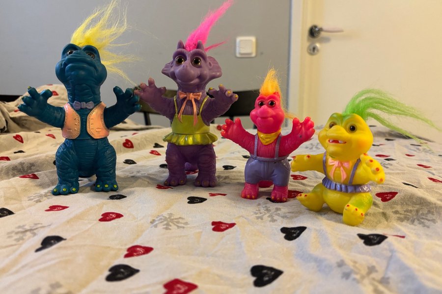 Set med fyra dinosaurie-dockor. Perfekt för samlaren eller som en rolig leksak.
