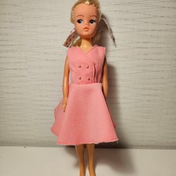 En Dam Danmark troll docka från 1984. Den har grönt hår och en grön klänning.