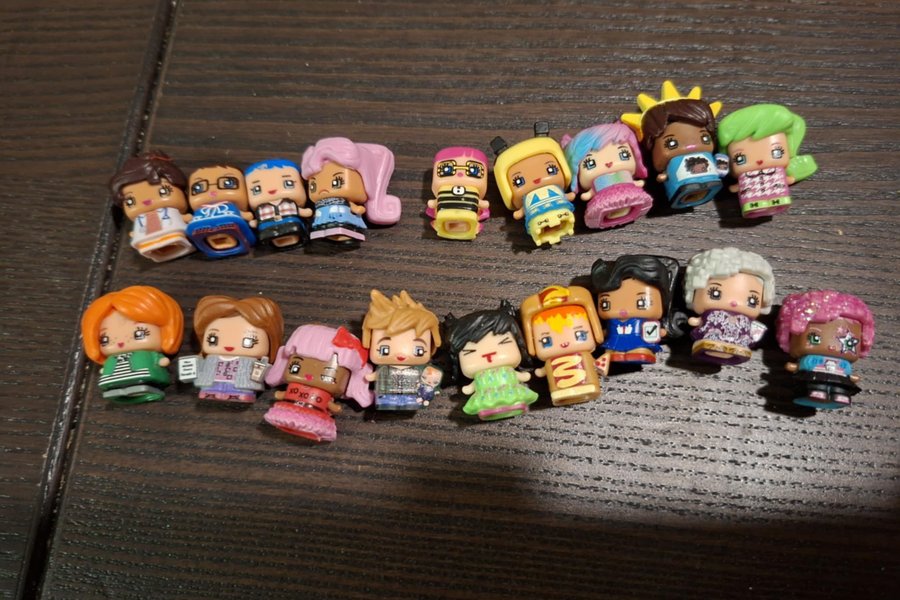 Flera olika, man kan flytta runt håren och så. Väldigt små i storlek. Blandat skick.
