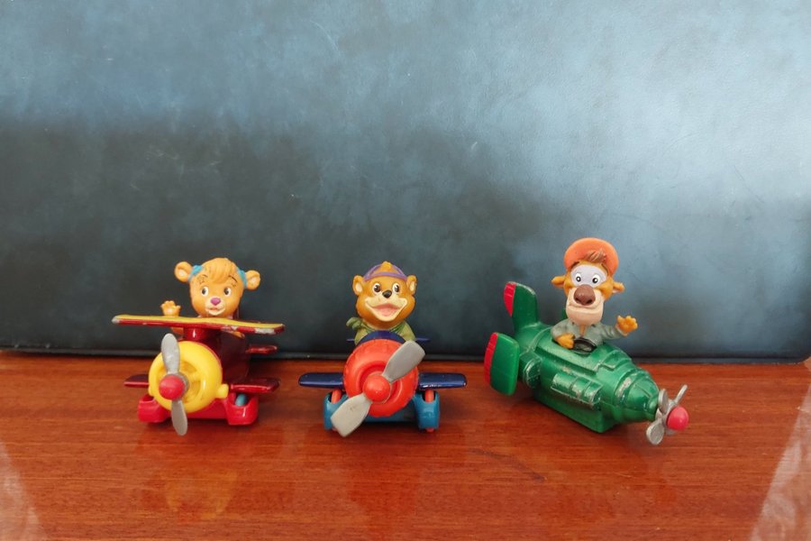 Detta set innehåller tre figurer med tillhörande flygplan. Figurerna är en björn, en räv och en annan björn. Flygplanen är i färgerna rött, blått och grönt.