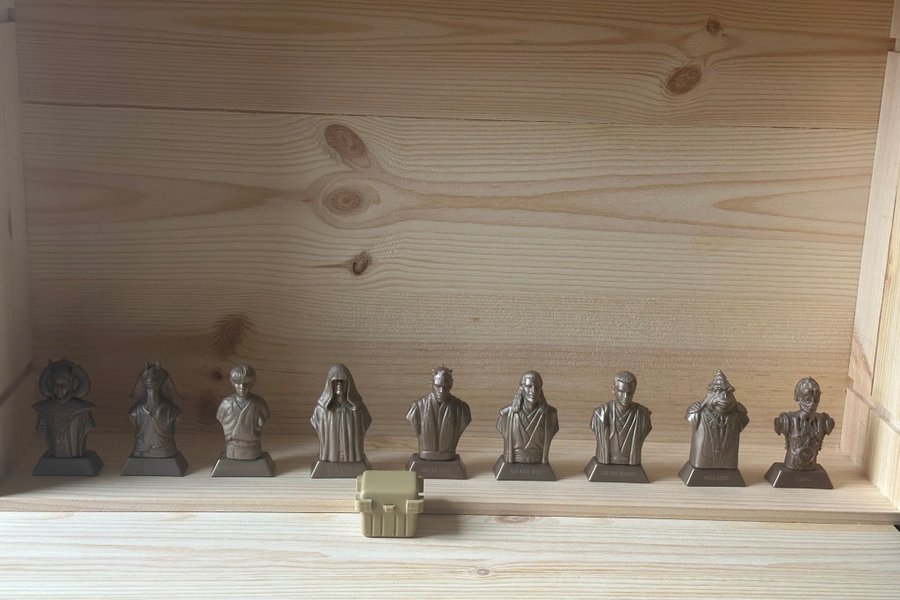 Figurerne inkluderer: Darth Maul, Qui-Gon Jinn, Obi-Wan Kenobi, Boss Nass, C-3PO, Anakin Skywalker, Dronning Amidala, Mace Windu og Yoda. Figurerne er detaljerede buster af karaktererne.