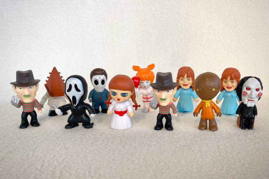 Detta set innehåller skräckfilmsfigurer. Figurerna är baserade på karaktärer från kända skräckfilmer. Ca 4 cm.