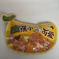 Denna lilla figur har en hatt med öron och en liten katt på huvudet. Figuren är färgglad med detaljer i blått, gult, rosa och lila.