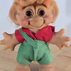 En söt liten Original Dam troll med svart hår och rosa klänning. Märkt Original Dam på ryggen. 7 cm