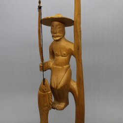 Snidad träfigurin , Trägubbe , Fiskare , Fiskargubbe , 1900-tal