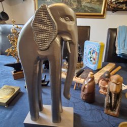 En handsnidad träskulptur föreställande en sköldpadda.