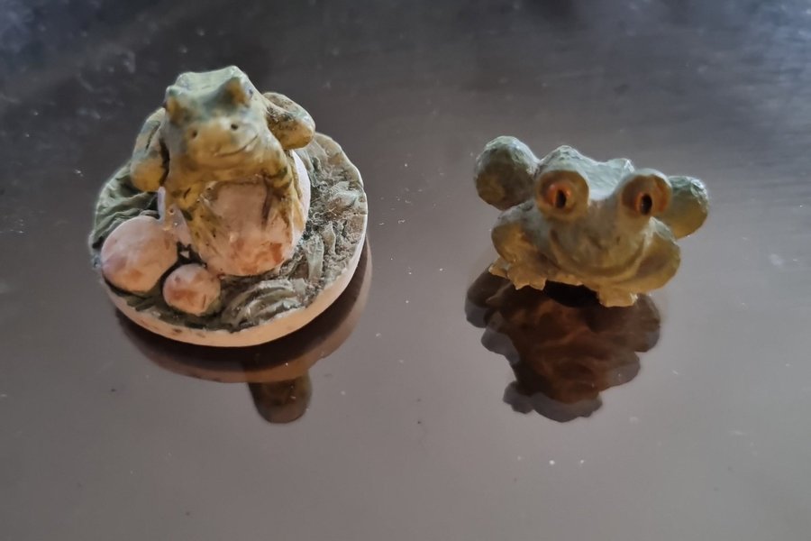 Två söta grodfigurer i olika utföranden. Perfekt för samlaren eller som dekoration.
